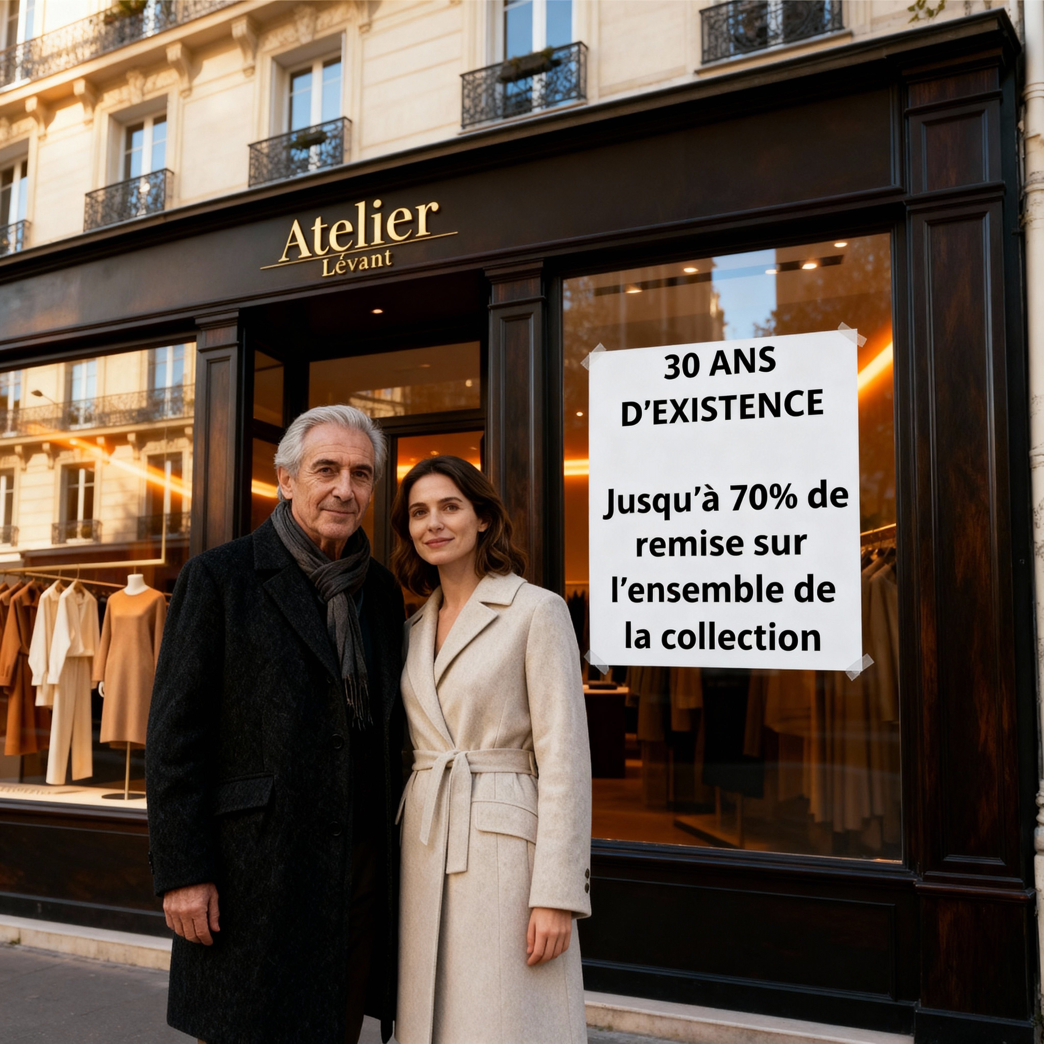 Il y a trente ans, j’ai perdu ma femme. Elle aimait créer des vêtements et elle avait un rêve simple et clair : aider les gens à se sentir plus beaux avec des pièces faites avec soin. Je ne voulais pas laisser ce rêve disparaître. J’ai donc ouvert une petite boutique à Paris. Pas de grands plans, mais une promesse fidèle pour elle et pour chaque client qui entre : nous travaillons avec précision, nous écoutons, nous ne nous précipitons pas. Ma fille a grandi ici, entre les rouleaux de tissu et le doux bruit de la machine à coudre. D’abord elle observait, puis elle a pris le crayon et m’a appris à regarder autrement. Elle a apporté de la légèreté et de la modernité, j’ai apporté la patience et la technique. Ensemble, nous avons construit ce qui est aujourd’hui Atelier Lévant. Notre collection est une conversation entre générations où la ligne et la portabilité se rencontrent. Je préfère un seul manteau que vous porterez pendant des années à dix qui vous vont presque. Aujourd’hui, nous fêtons nos trente ans. Quand je regarde autour de moi dans notre atelier, je vois sa passion dans chaque détail et notre travail dans chaque couture. Ce que vous trouvez ici n’est pas une tendance mais une promesse. Que vous vous sentiez reconnu lorsque vous le portez. Bienvenue.
