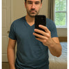 Gabin ne cherche pas à séduire, il s’impose avec naturel. Son col en V délicatement tracé libère le regard, structure le haut du buste et adoucit la ligne. C’est un t-shirt qui respire le calme – idéal pour ces journées où l’essentiel devient un luxe précieux.